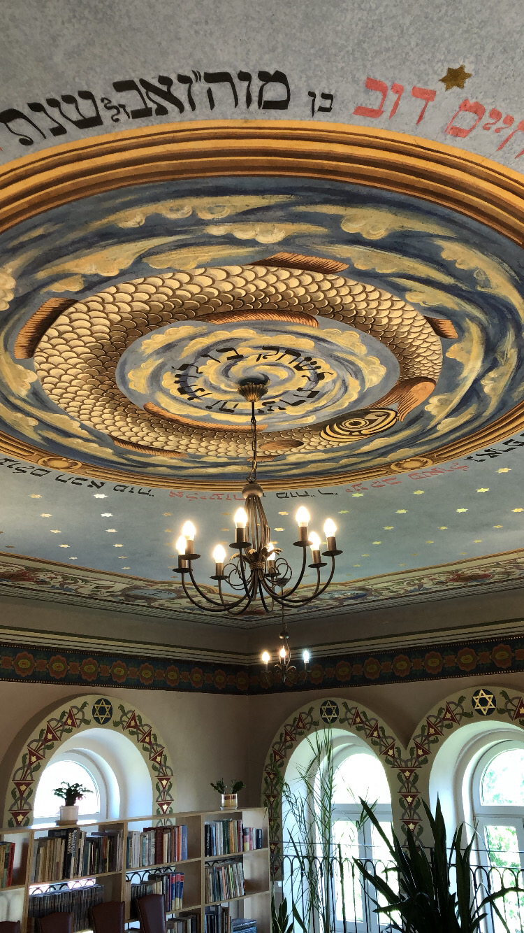 Synagoga w Niebylcu zachowała się do naszych czasów w doskonałym stanie! Obecnie znajduje się tam biblioteka publiczna. Panie z biblioteki chętnie pokazują jej zjawiskowe wnętrze z pięknie zachowanymi freskami, w tym z wielorybem na suficie, o którym wspominał Natan Weiss.