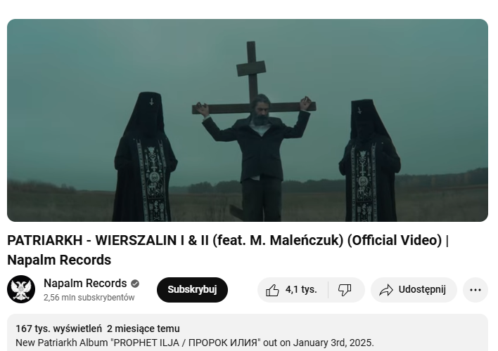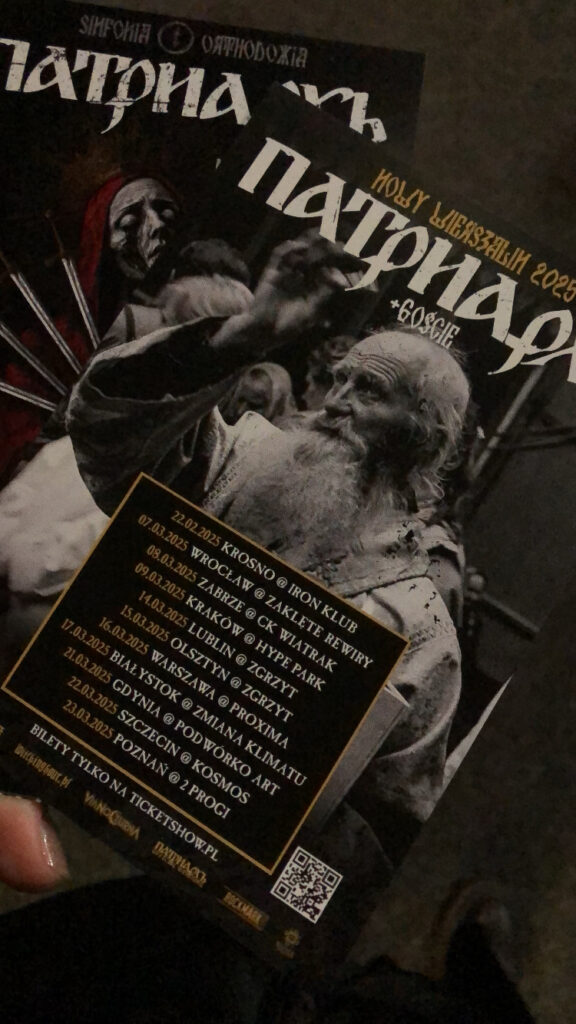 Polska premiera najnowszego albumu zespołu Patriarkh, znanego szerzej jako ex-Batushka, odbyła się 3 stycznia 2025 roku. Miało to miejsce podczas koncertu inauguracyjnego w Łodzi z udziałem męskiego chóru. Jak przyznają członkowie zespołu, najważniejszym elementem ich filozofii scenicznej jest teatralność, przez co występy bardziej przypominają spektakl aniżeli zwykły koncert. Podczas widowiska w Łodzi na scenie pojawił się aktor wcielający się w rolę proroka Ilji. Z kolei gościnna wokalistka Patriarkh wystąpiła w stroju matuszki (według mnie kochanicy proroka – Fiokły). Nawiązano także do próby ukrzyżowania proroka, a uczestnicy koncertu byli konsekwentnie nazywani pielgrzymami – niczym wyznawcy sekty grzybowskiej, którzy 90 lat temu tłumnie przybywali do Wierszalina z dalekich stron.